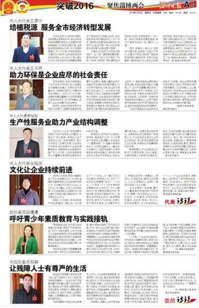 2016年1月16日、17日,第十一屆淄博市政協(xié)委員會(huì)第五次會(huì)議、第十四屆人大五次會(huì)議相繼召開(kāi)。董事長(zhǎng)郭培勛作為市人大代表、總經(jīng)理王俊作為市政協(xié)委員分別參加了會(huì)議。會(huì)上,公司董事長(zhǎng)郭培勛接受淄博晚報(bào)專(zhuān)訪(fǎng),結(jié)合“十三五”規(guī)劃綱要,提出了“產(chǎn)業(yè)性服務(wù)業(yè)不能為了發(fā)展而發(fā)展,應(yīng)當(dāng)從高度、長(zhǎng)度和深度三方面進(jìn)行合理規(guī)劃。首先,應(yīng)該把淄博打造成商務(wù)咨詢(xún)服務(wù)區(qū)的魯中總部,成為魯中服務(wù)區(qū)的中心。其次,單一性的服務(wù)市場(chǎng)比較差,規(guī)模也較小,要強(qiáng)調(diào)鏈條服務(wù),打造服務(wù)鏈。最后,要結(jié)合淄博市產(chǎn)業(yè)結(jié)構(gòu)的調(diào)整,把服務(wù)業(yè)融合到產(chǎn)業(yè)結(jié)構(gòu)調(diào)整之中,讓服務(wù)業(yè)更有價(jià)值”的建議。
